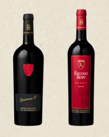« Escudo rojo » est un vin signature. Créé en 1999, son nom clame son héritage puisqu’il est la traduction en espagnol de l’allemand « Rote Schild » qui signifie « Blason Rouge ». En donnant ce nom à ce vin, la baronne Philippine de Rothschild (décédée en 2014) a signé l’ancrage de la famille Rothschild au Chili. Les deux vins présentés proviennent de la vallée de Maipo. Ce sont des assemblages où l’expression du cabernet sauvignon domine. Puissants et élégants, ils ont du fruit et des notes épicées. Ce sont des vins de gastronomie.